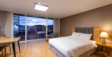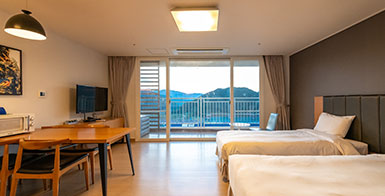 침실겸 거실, 온돌실, 화장실(샤워부스)로 구성되어있으며 실속을 중시하는 가족 친화형 리조트객실